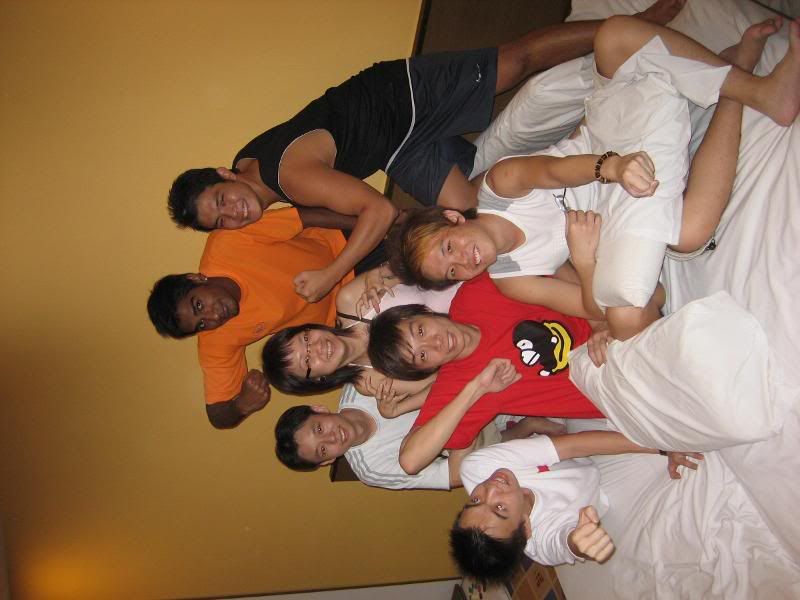 haha... cute huh... -__- den we go eat and bbq liao.. i nv take ani pics... haha... so i nv put here... den after tat we take stupid pics on beds.... first is yi min in center...