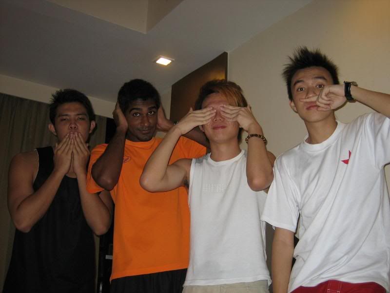 Speak no evil, hear no evil, see no evil, smell no evil??? hahah.... proudly brought to u by benson, art, phil and eric.... hahaha... im the ugliest ther...